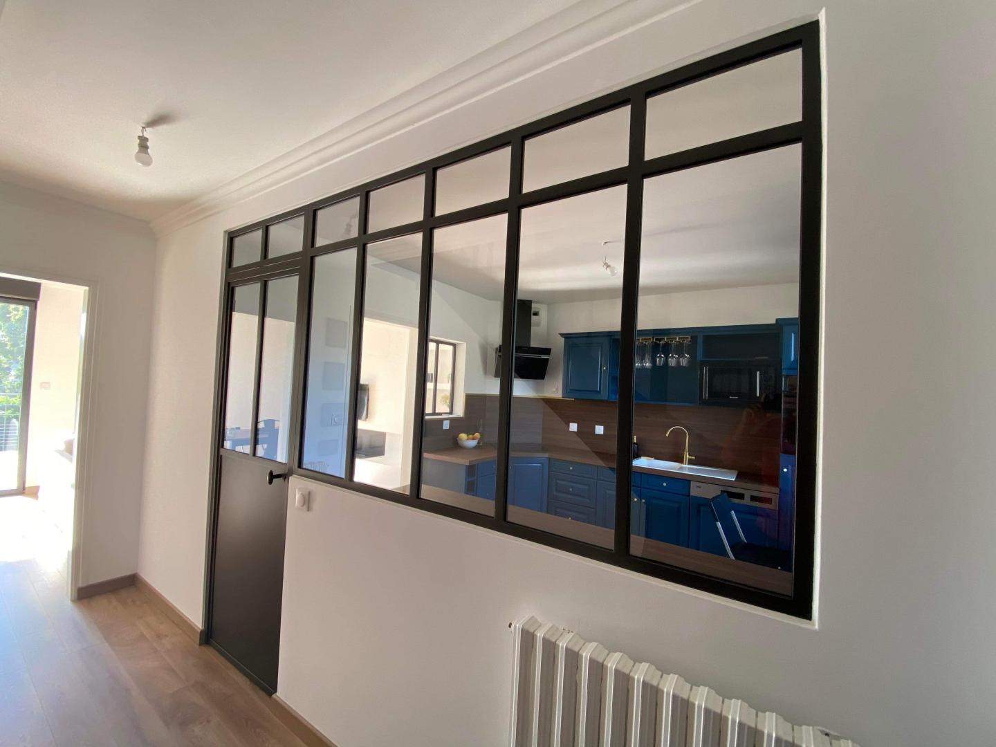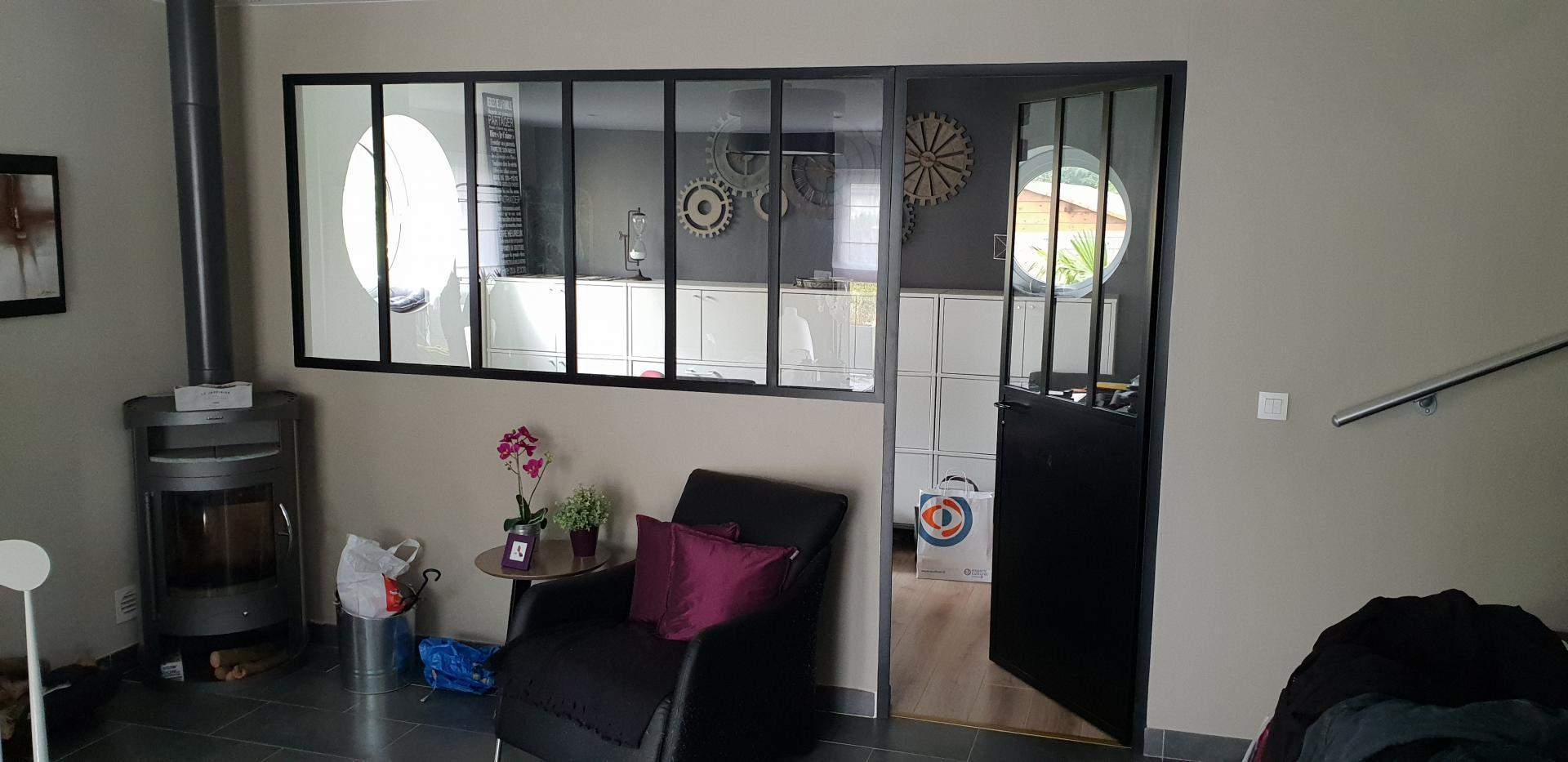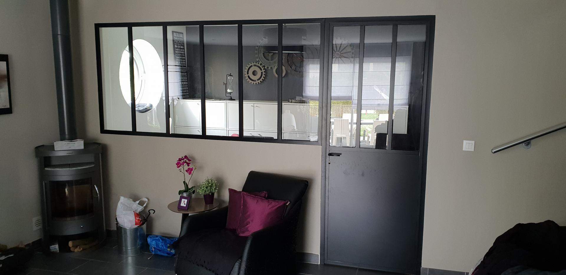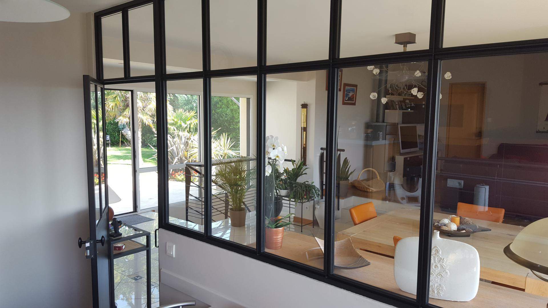 - Verrière intérieure métal type "atelier" fixe ou ouvrante, grilles décoratives avec volutes et motifs forgé, pare-vue, pare-vent,...