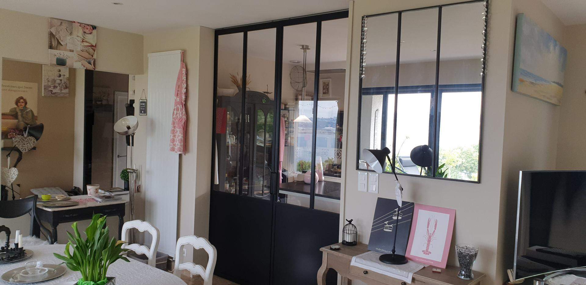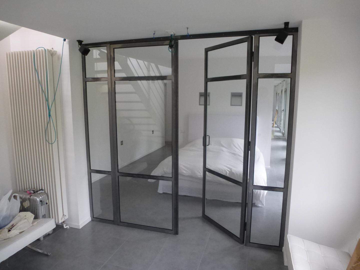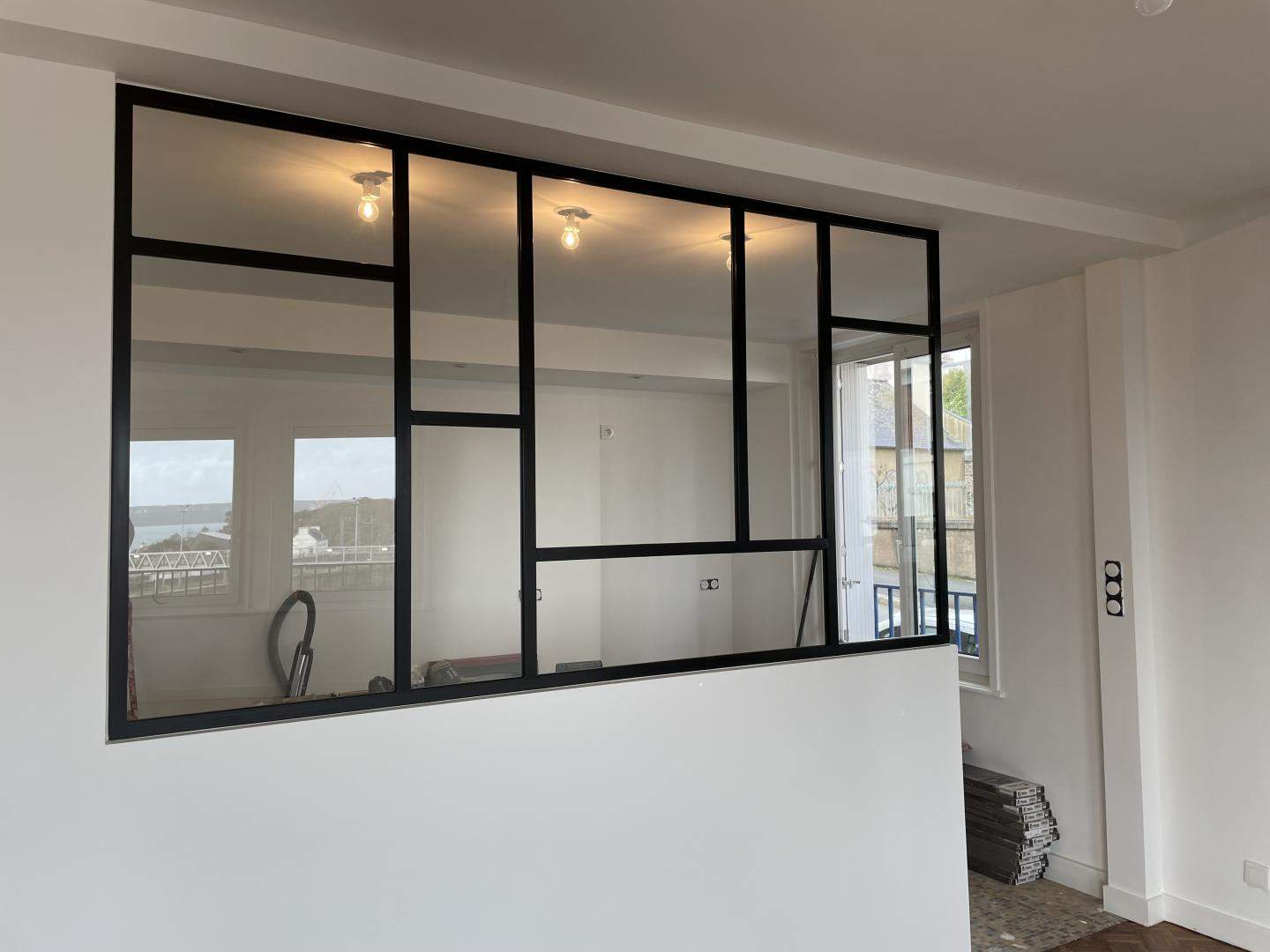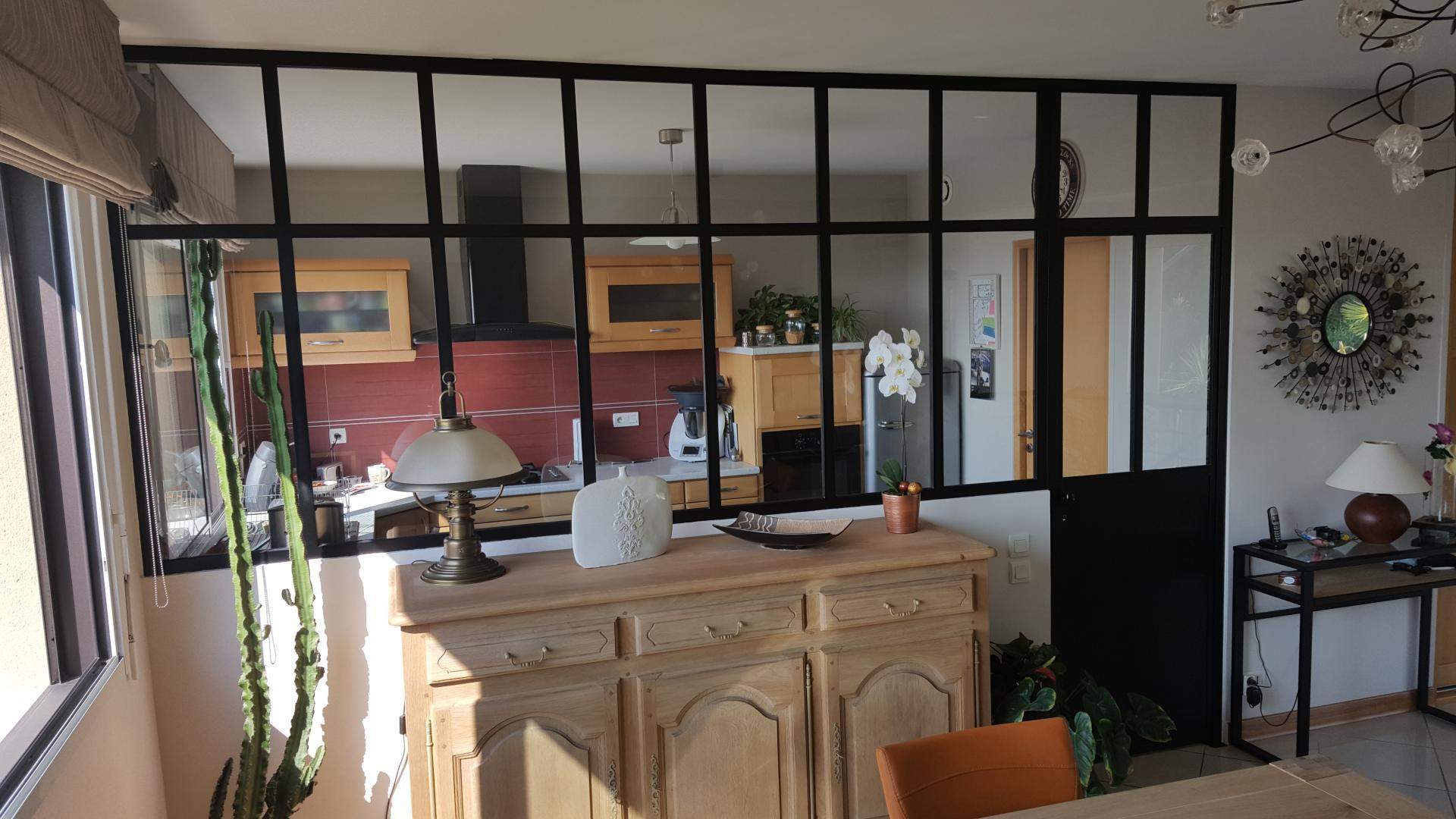 - Verrière intérieure métal type "atelier" fixe ou ouvrante, grilles décoratives avec volutes et motifs forgé, pare-vue, pare-vent,...