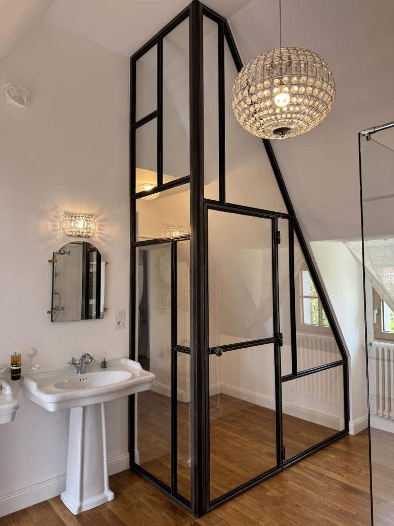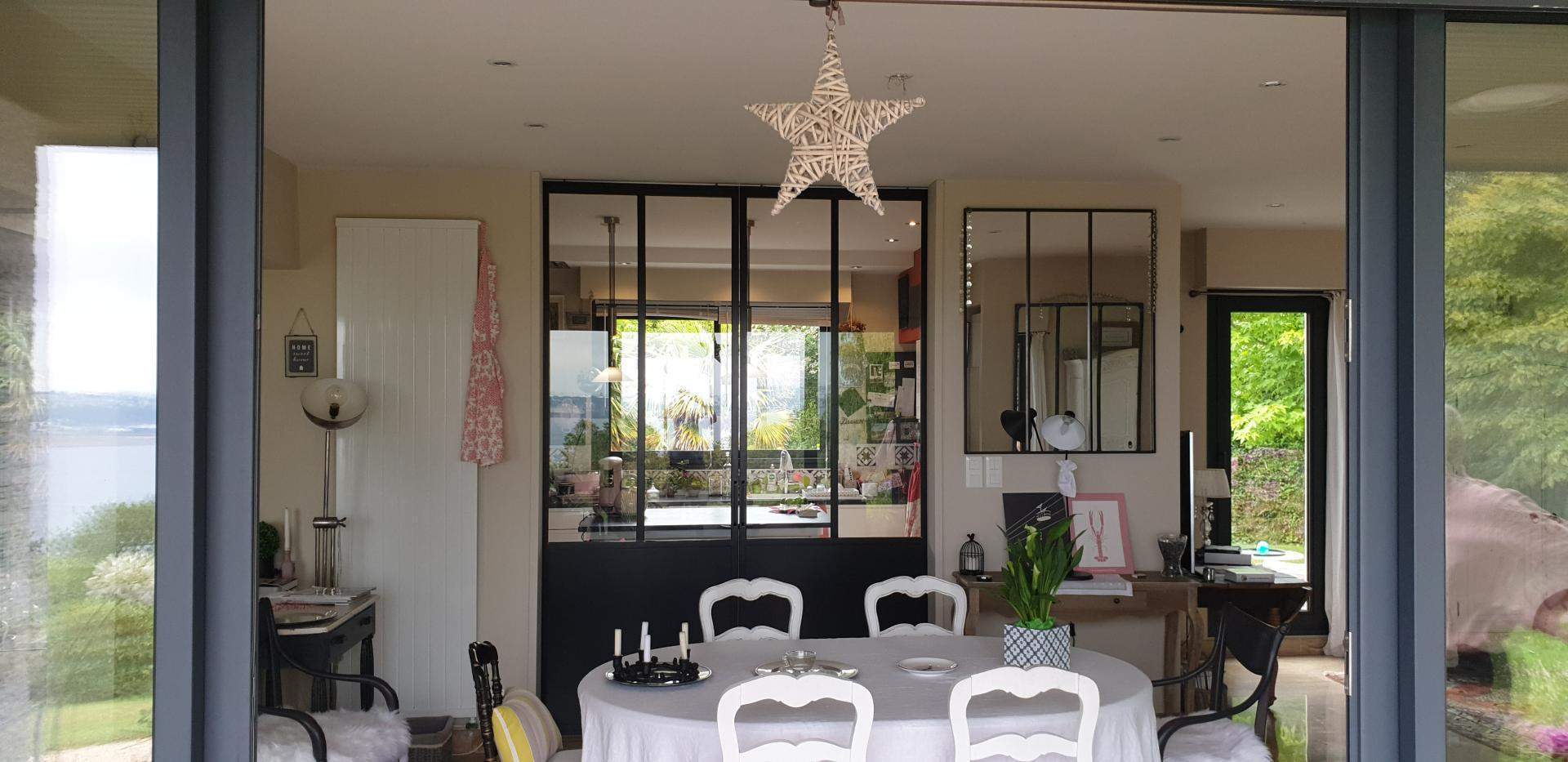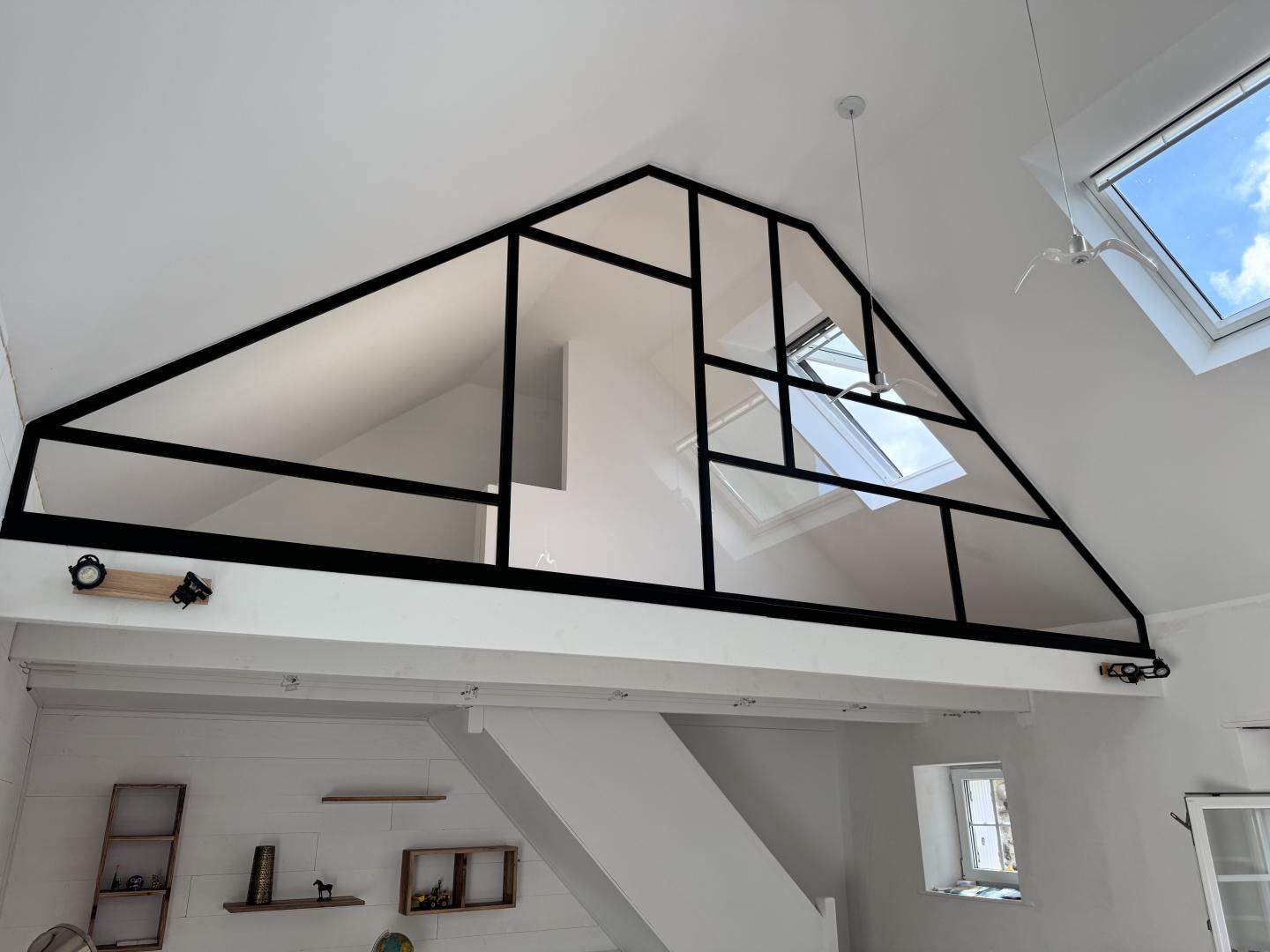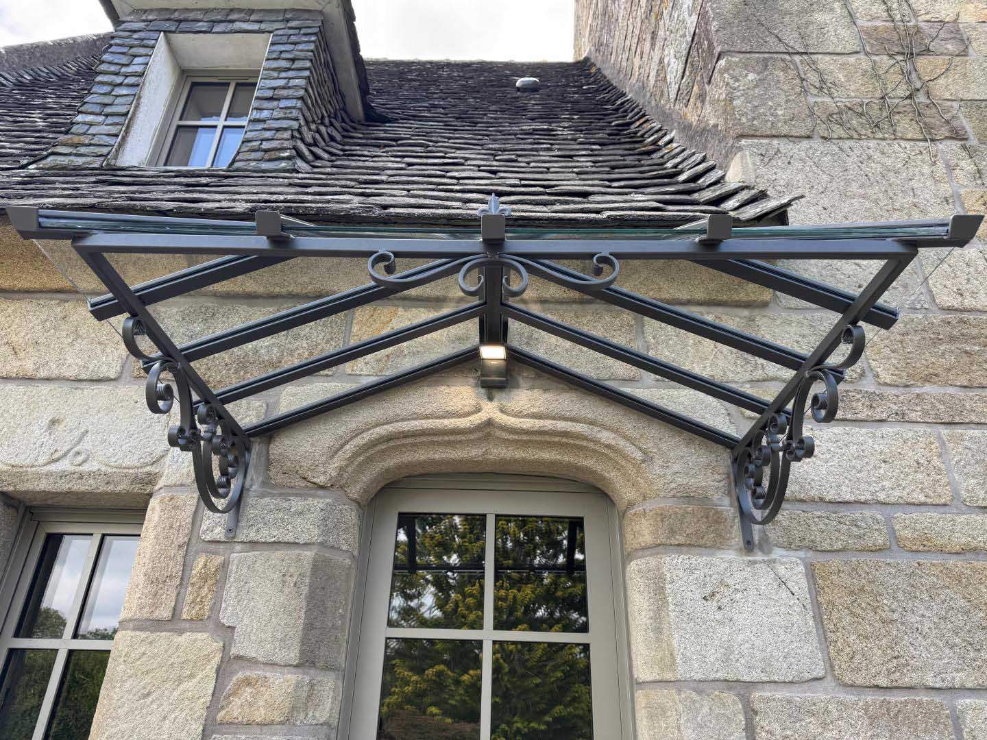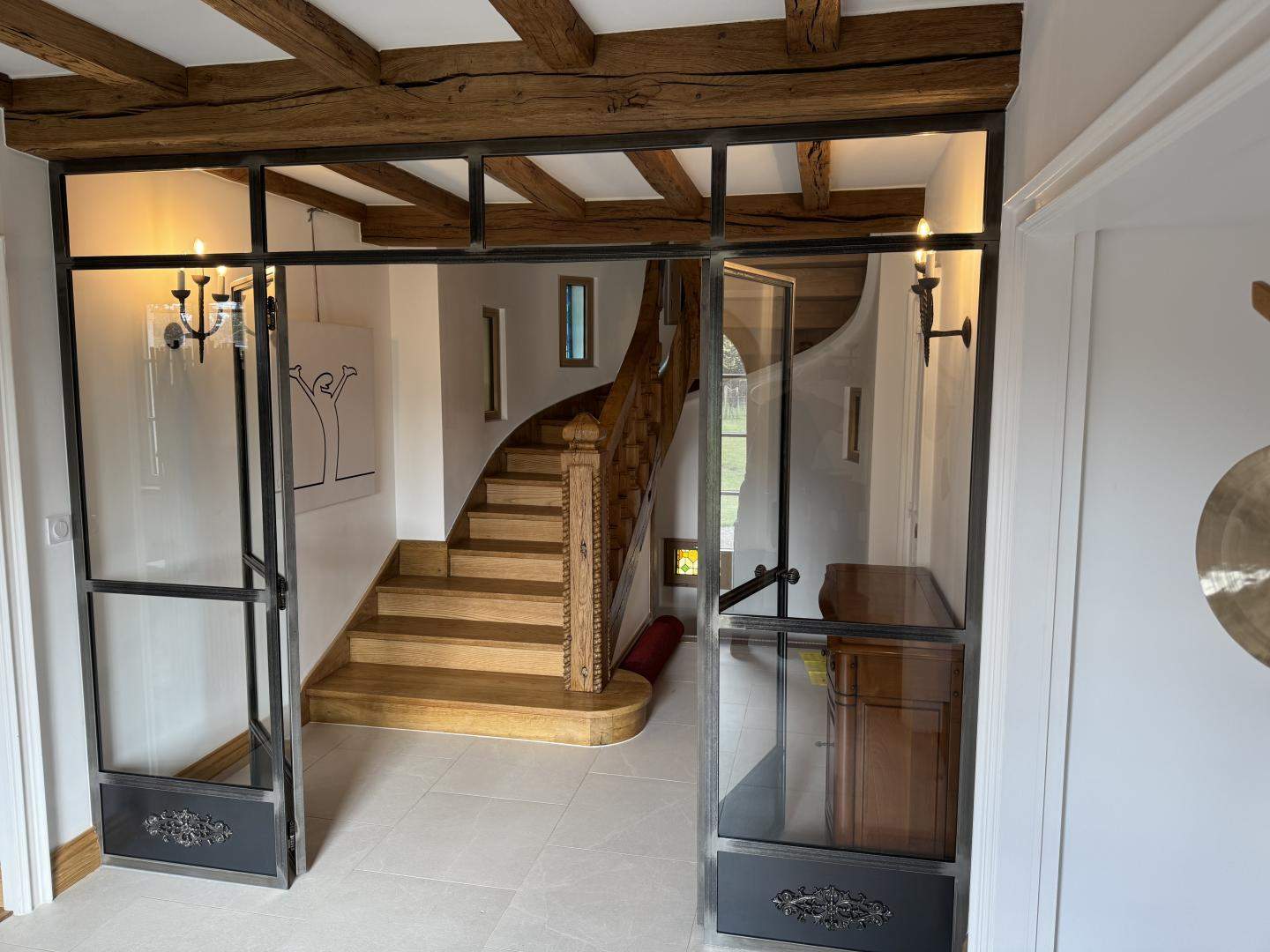 - Verrière intérieure métal type "atelier" fixe ou ouvrante, grilles décoratives avec volutes et motifs forgé, pare-vue, pare-vent,...